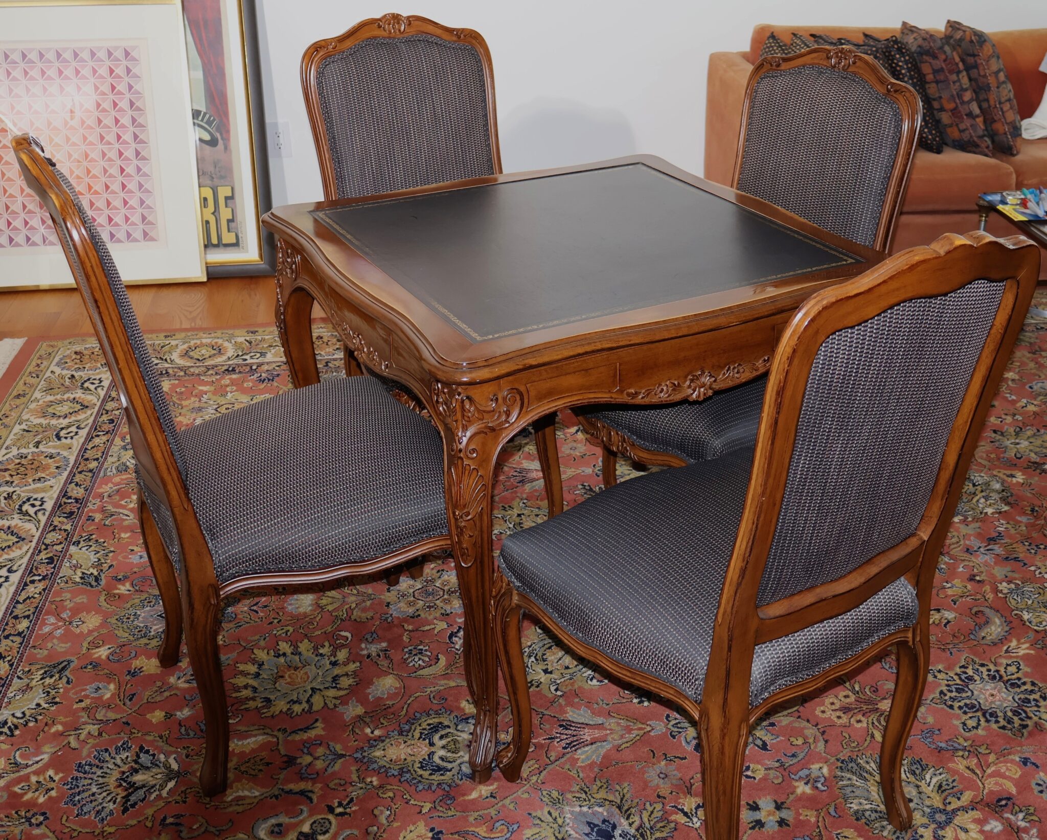 - Carved Wood Card Table With 4 Chairs