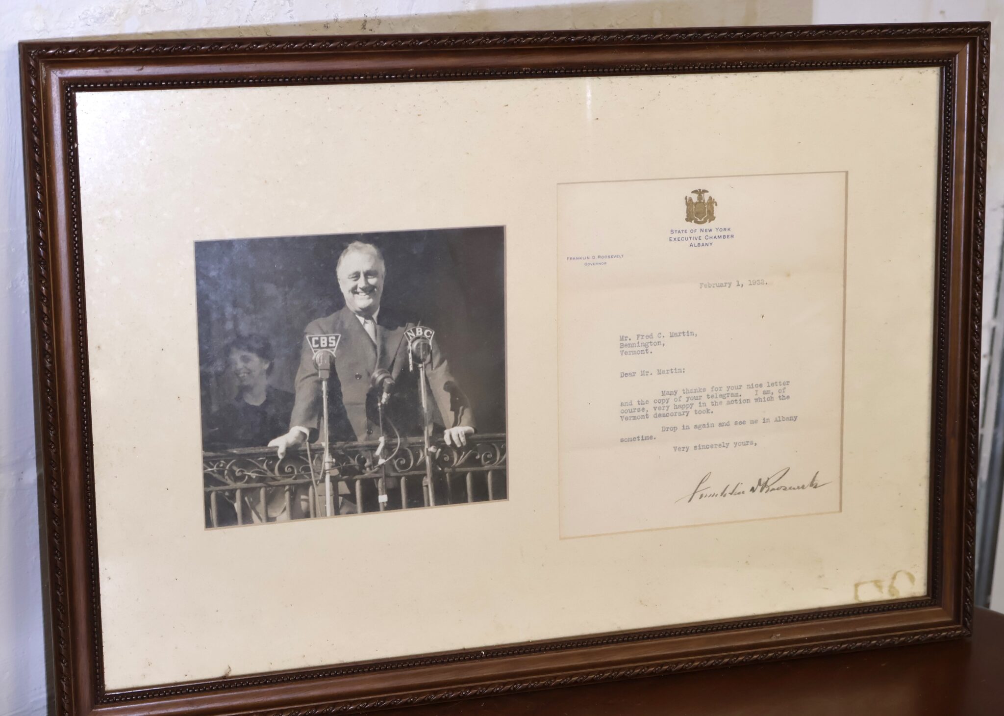 - Franklin Roosevelt Signed Letter To Fred C. Martin – Dated February 1932