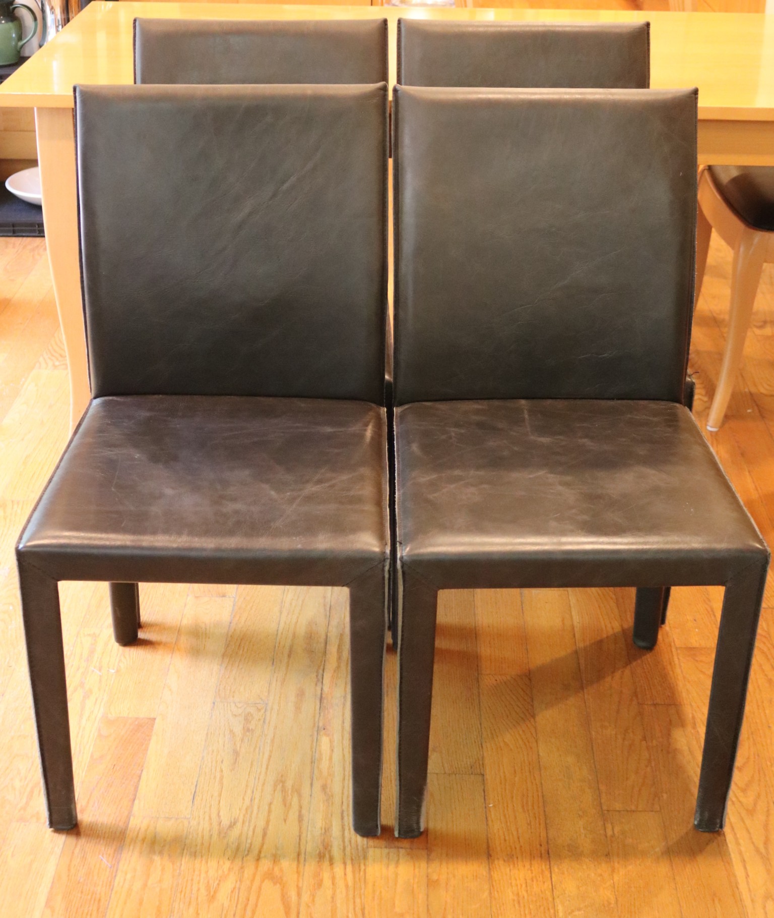 - Set Of 4 Crate & Barrel Leather Chairs