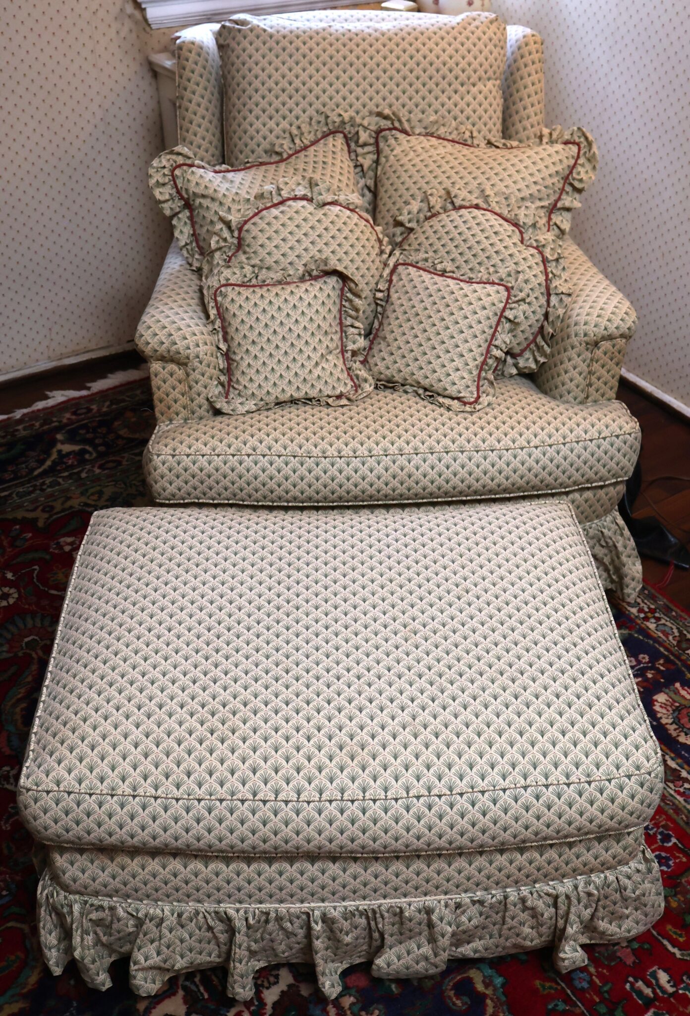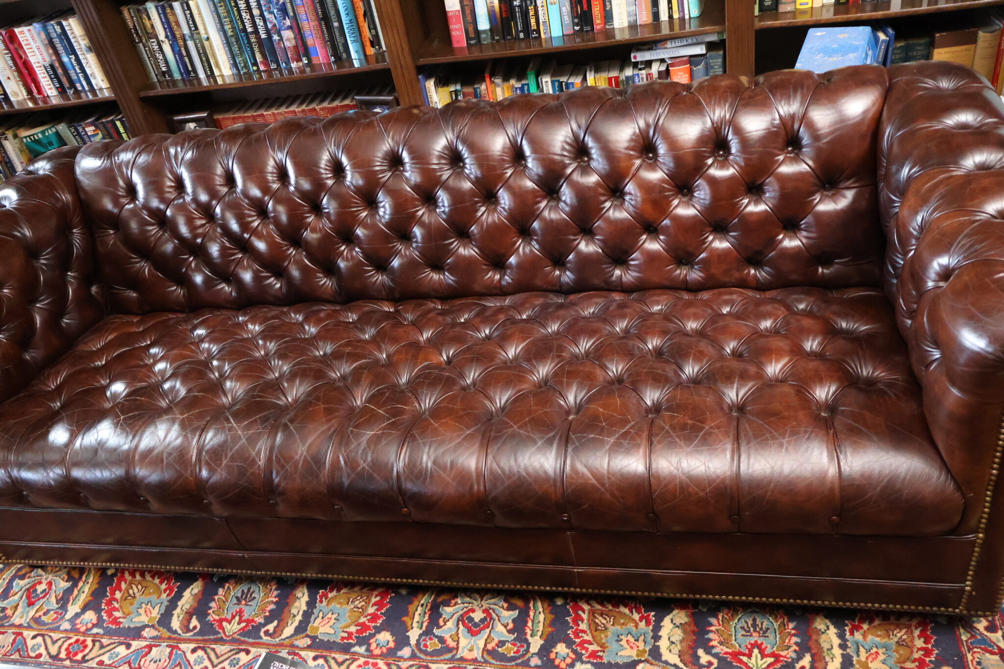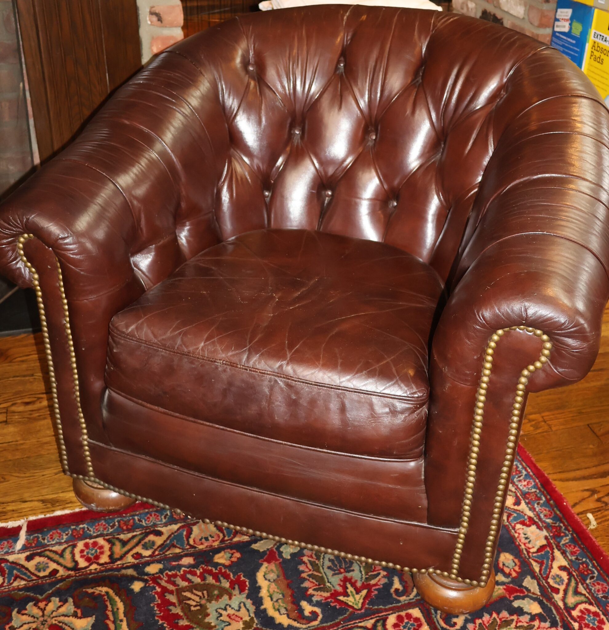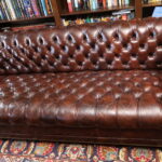 - Brown Leather Chesterfield Sofa & Club Chair